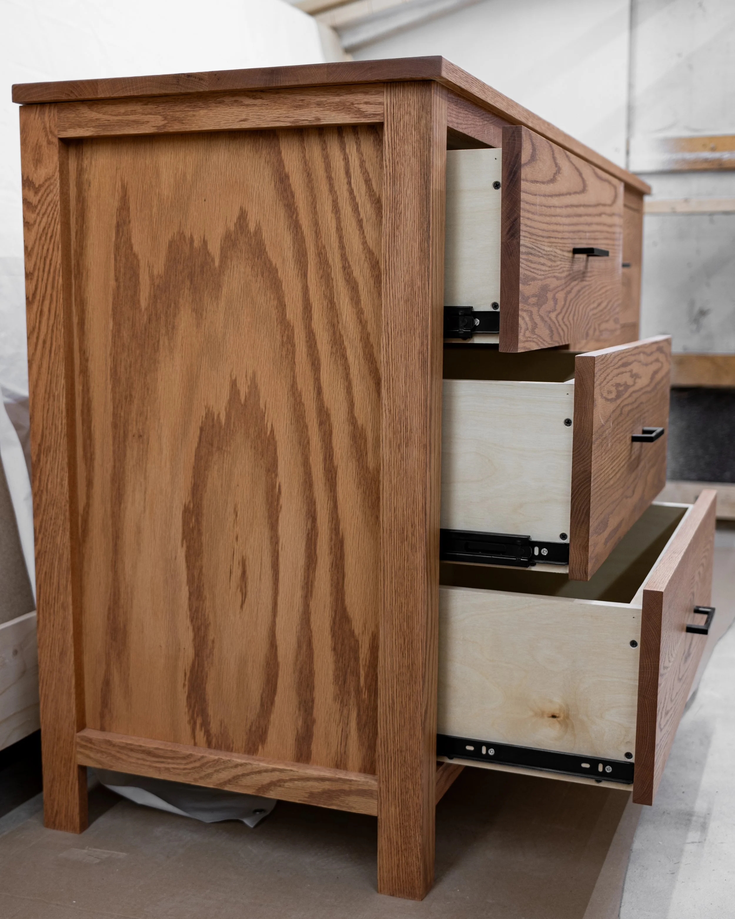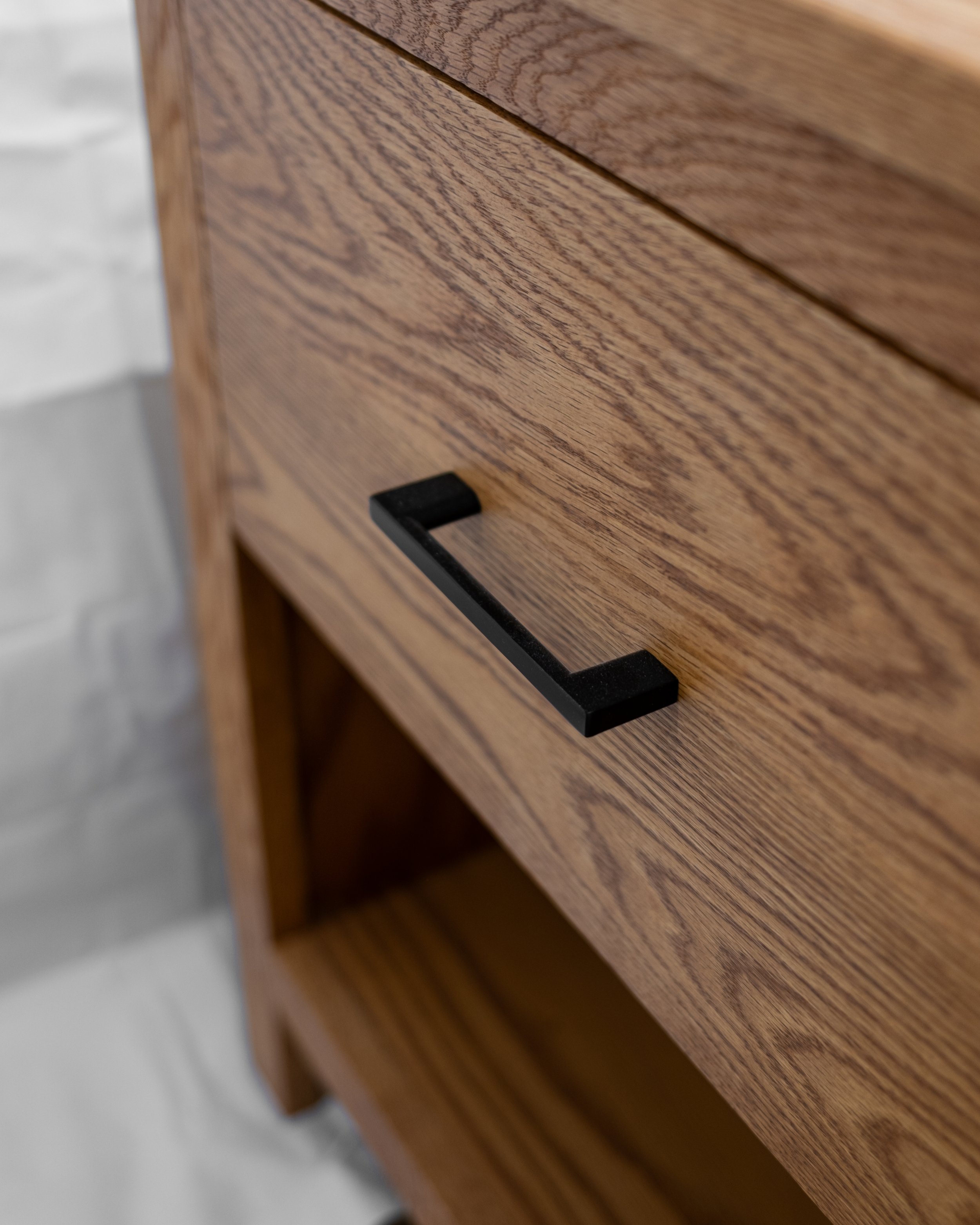 Découvrez l’élégance intemporelle du style shaker alliée à un savoir-faire artisanal avec cette commode et ces deux tables de nuit en chêne rouge massif, conçues entièrement sur mesure. Pensés pour apporter à la chambre d’un de nos client un mobilier à la fois fonctionnel et raffiné, ces meubles se distinguent par leur simplicité élégante et leur robustesse naturelle.